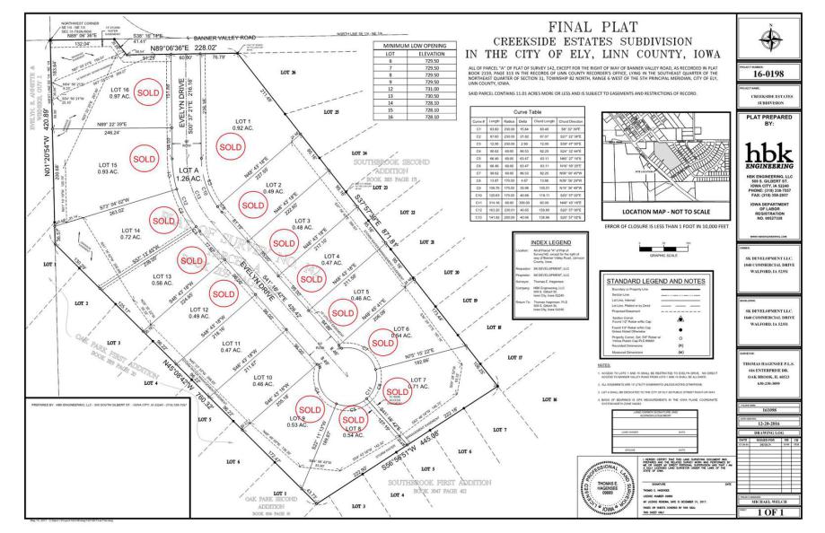 Creekside Estates - Ely, IA LOTS NOW AVAILABLE FOR SALE